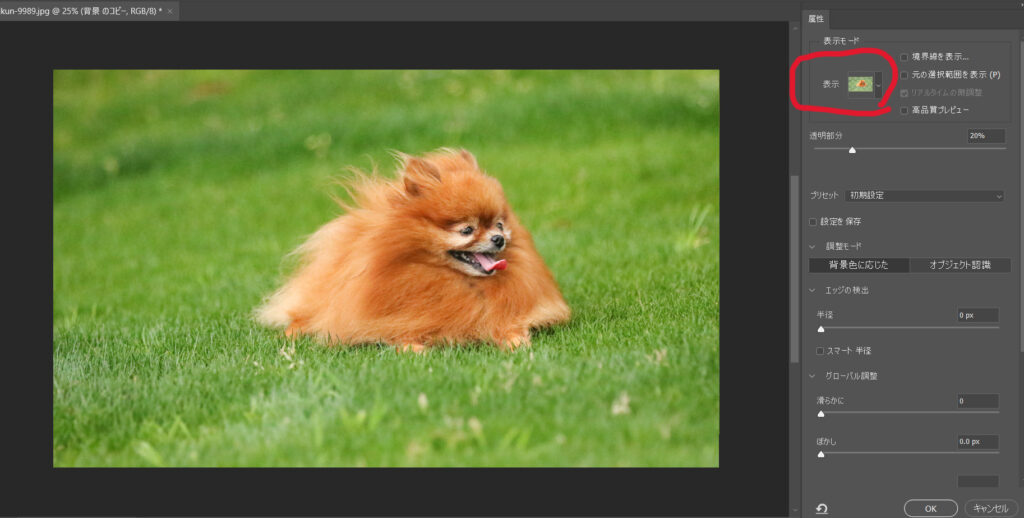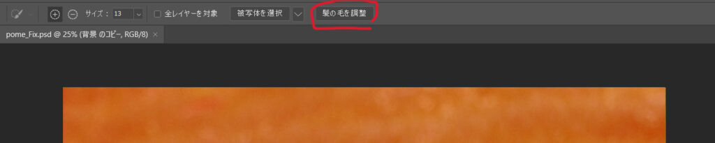 4.髪の毛等のエッジが曖昧なものは「髪の毛を調整」をクリックする
